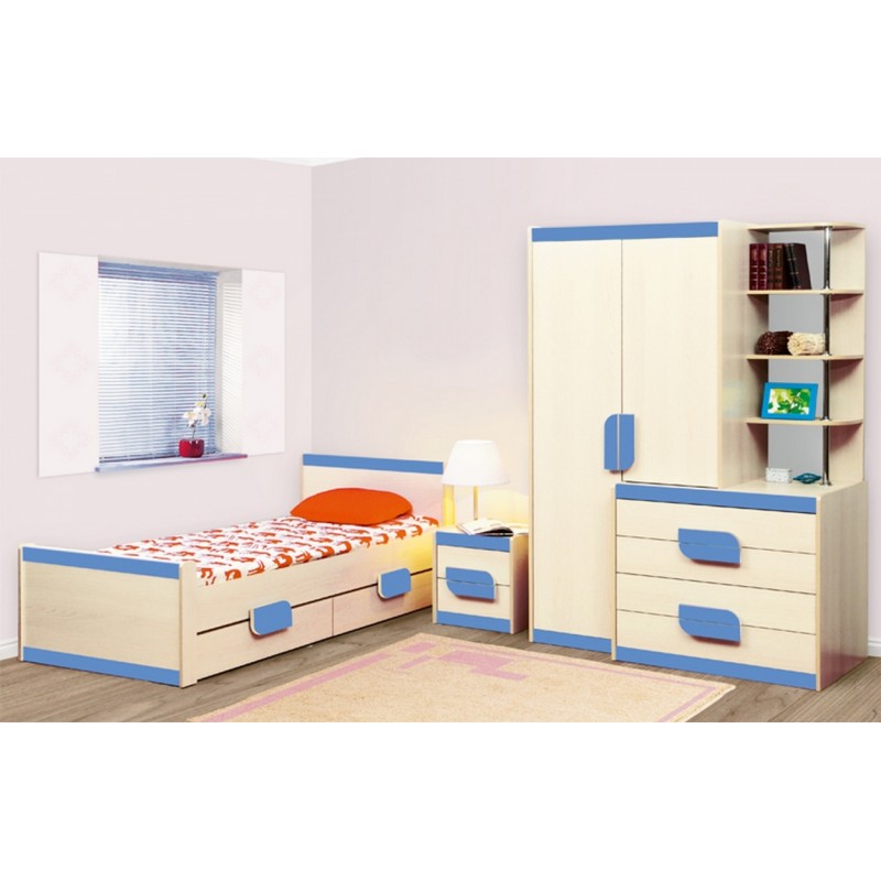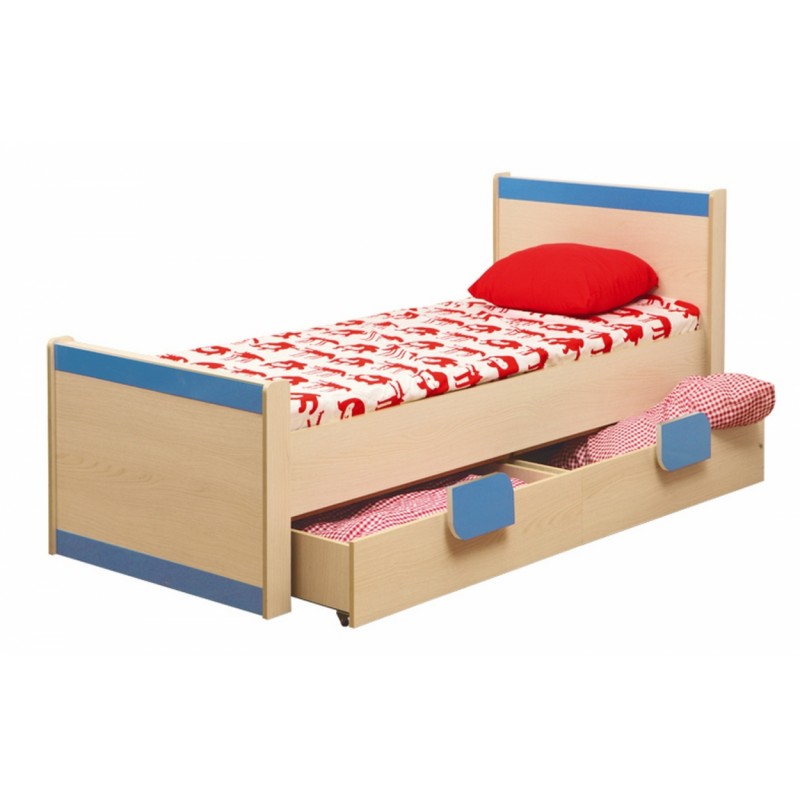 Односпальная кровать Лайф-4 – исполнена в простом дизайне. Конструкция оборудована парой выдвижных ящиков для хранения подушек, одеял, постельного белья и других вещей. В декорировании спинок и корпуса кровати использован голубой или розовый цвет для придания выразительности её внешнему виду. Ящики ставятся как в одну, так и в другую сторону.