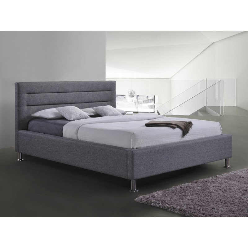 Элегантная кровать LIDEN от польской компании SIGNAL с высоким изголовьем, декорированным глубокими полосами. Материал обивки – ткань серого цвета. Удобные устойчивые ножки выполнены из металла с напылением хрома. Матрас должен заказываться 160x200 см.