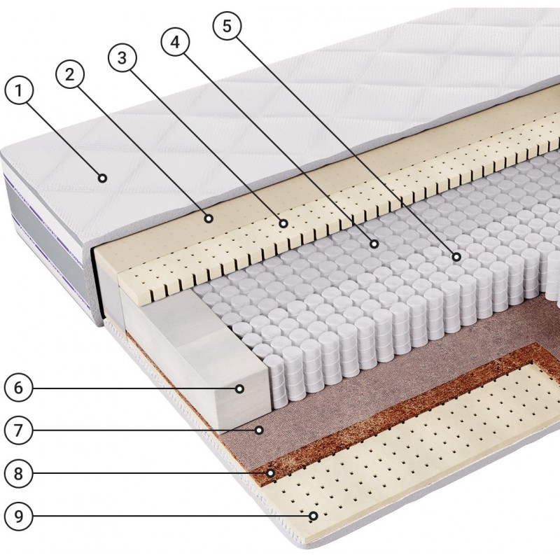 Система жесткого периметра матраса выполнена из пены высокой плотности толщиной 70 мм. Располагается внутри матраса, создает идеальную форму его боковой части и дополнительно повышает жесткость краев, защищая их от проседания при нагрузках.