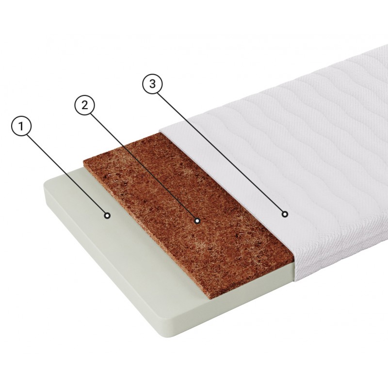 Кокосовая койра - 100% натуральный материал с уникальными свойствами. Койра, скрепленная натуральным латексом, дает объемную упругую воздухопроницаемую структуру. Такой материал используется в моделях, предназначенных для любителей более жесткого и упругого спального места. Естественные вентиляционные качества, эластичность, прочность, упругость, гигиеничность и антиаллергенность, наряду с очень долгим сроком службы, делают этот материал идеальным для наполнения матраса.