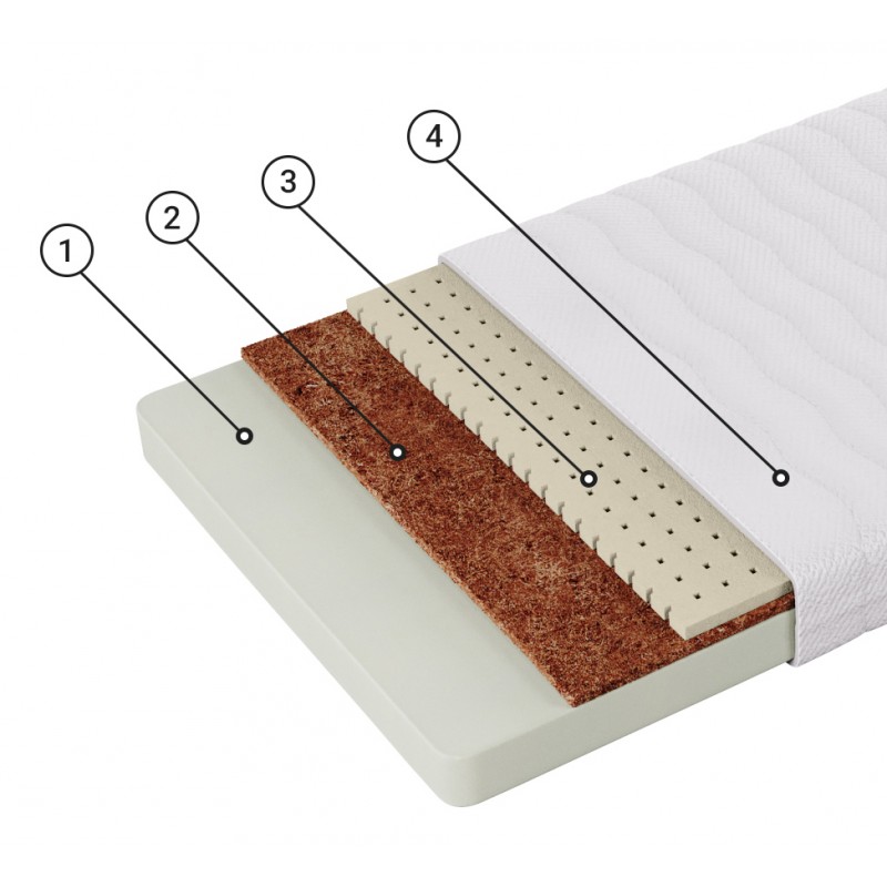 Кокосовая койра - 100% натуральный материал с уникальными свойствами. Койра, скрепленная натуральным латексом, дает объемную упругую воздухопроницаемую структуру. Такой материал используется в моделях, предназначенных для любителей более жесткого и упругого спального места. Естественные вентиляционные качества, эластичность, прочность, упругость, гигиеничность и антиаллергенность, наряду с очень долгим сроком службы, делают этот материал идеальным для наполнения матраса.