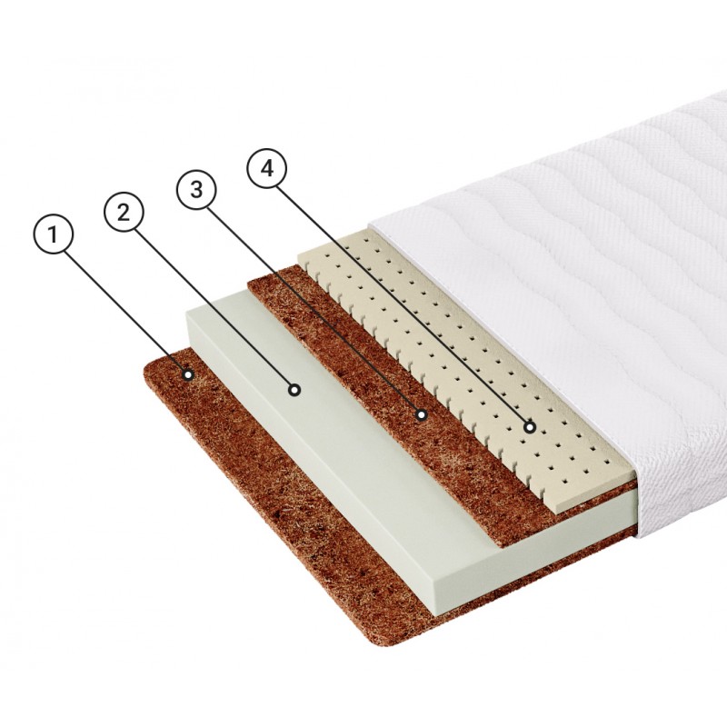 Кокосовая койра - 100% натуральный материал с уникальными свойствами. Койра, скрепленная натуральным латексом, дает объемную упругую воздухопроницаемую структуру. Такой материал используется в моделях, предназначенных для любителей более жесткого и упругого спального места. Естественные вентиляционные качества, эластичность, прочность, упругость, гигиеничность и антиаллергенность, наряду с очень долгим сроком службы, делают этот материал идеальным для наполнения матраса.