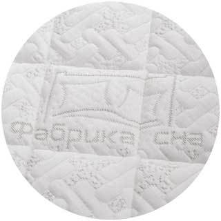 Чехол выполнен из прочной трикотажной ткани в составе которой содержится хлопок. Ткань простегана по технологии глубокой стежки. Особая техника стёжки позволяет равномерно, без потери формы и объёма, зафиксировать все составляющие чехла. Хлопковые нити в составе ткани обеспечивают здоровый микроклимат во время сна. Чехол имеет молнию, что позволяет стирать его в домашних условиях.